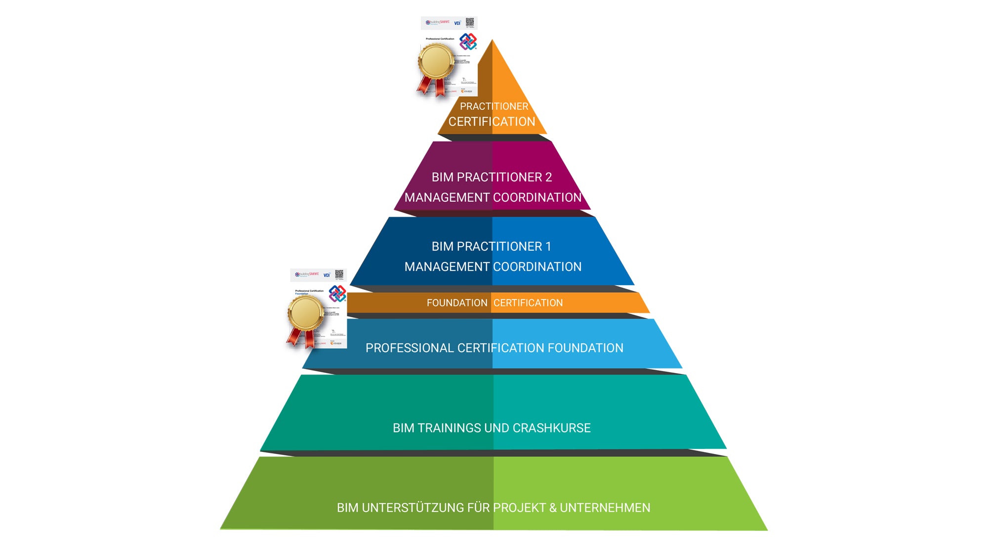 Teilnahmezertifikat und optional die neue weltweit anerkannte bS | VDI Zertifizierung zur Anerkennung Ihrer BIM Kompetenz in BIM Koordination und BIM Management.